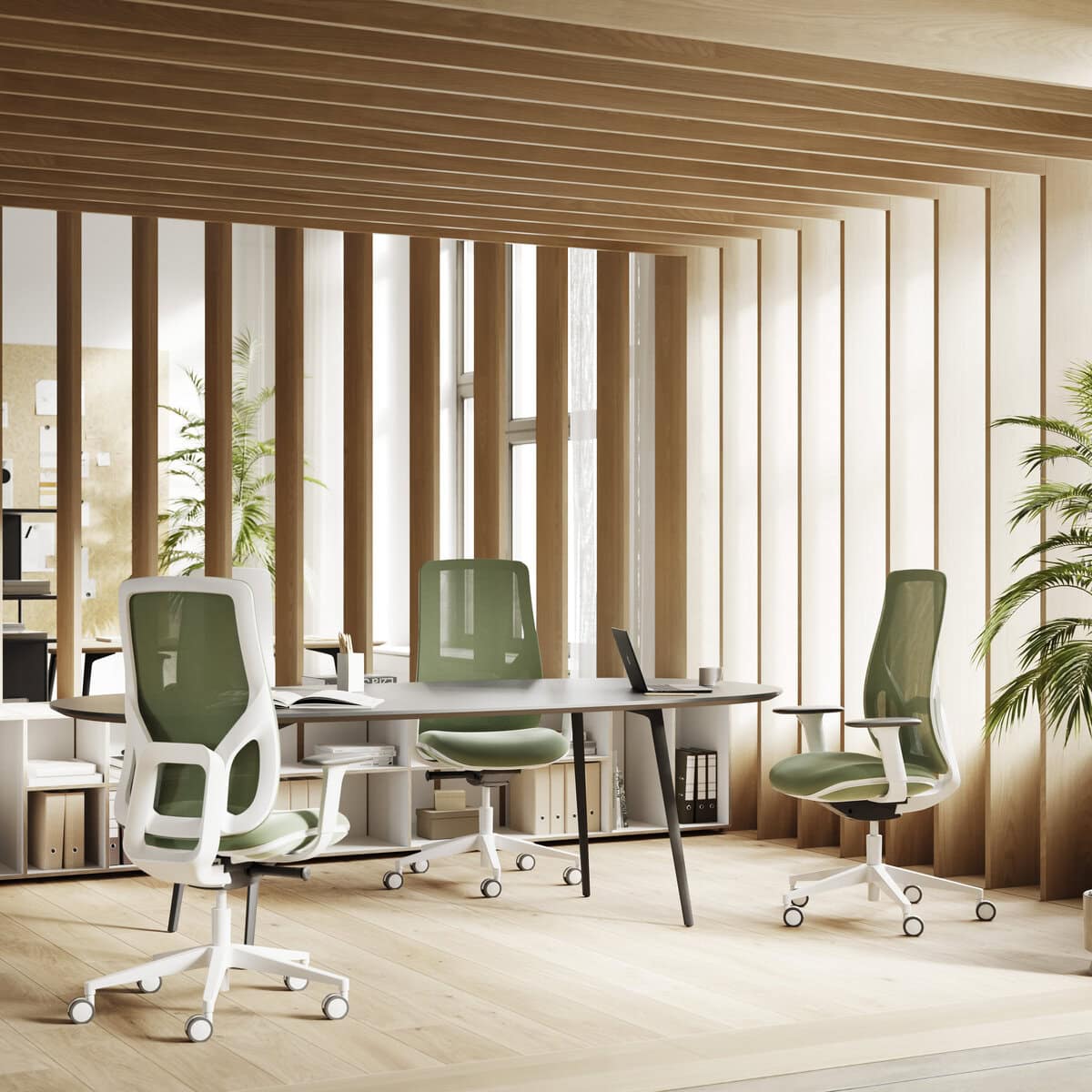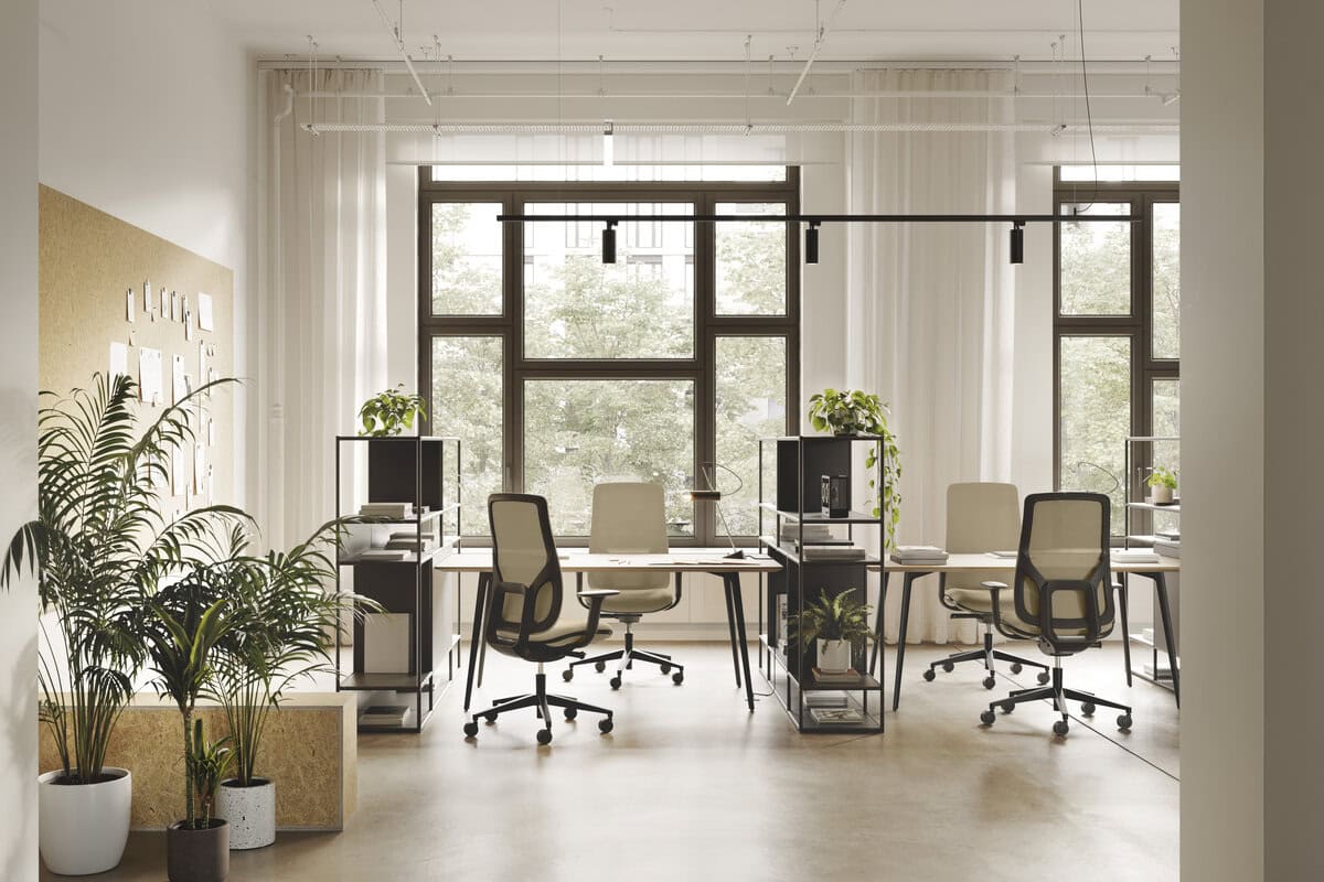 On y voit plusieurs fauteuils de bureau EMAN design